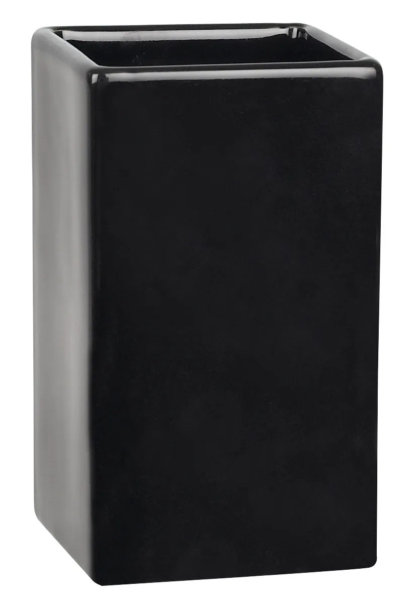 Spirella Kelímek na zubní kartáčky Quadro, černá, 6,5 x 6,5 x 10,5 cm