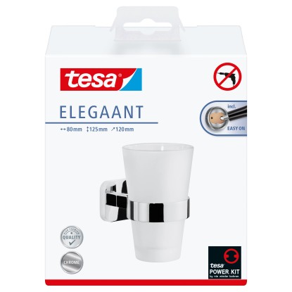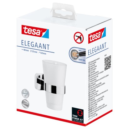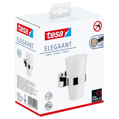 Citlivě vypracovaný z matného skla a kovu s vysoce lesklým pochromováním - ladný držák s pohárkem na zubní kartáčky tesa Elegaant je nádherným doplňkem s výrazným jemným hranatým designem. Pohárek lze umývat a držák je nerezový a voděodolný.