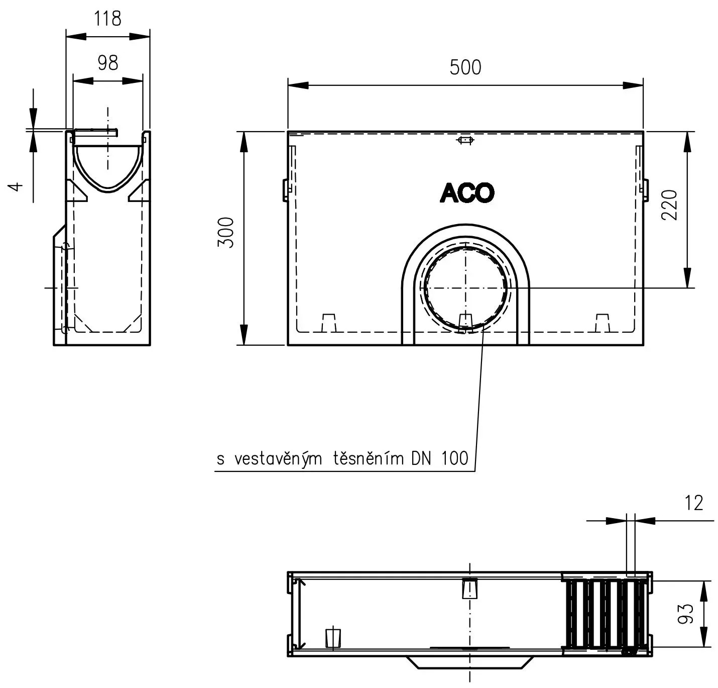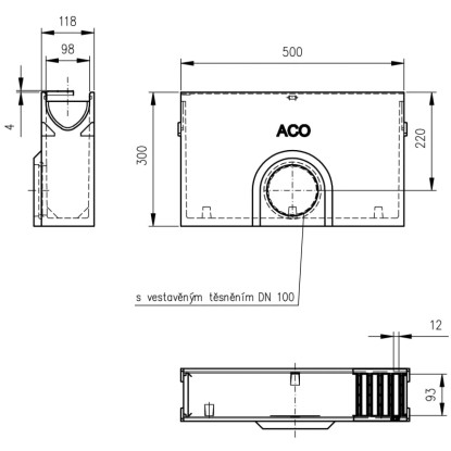 ACO Odtoková vpusť Self Euroline vč. kalového koše, pozink.můstkový rošt, 0,5 m