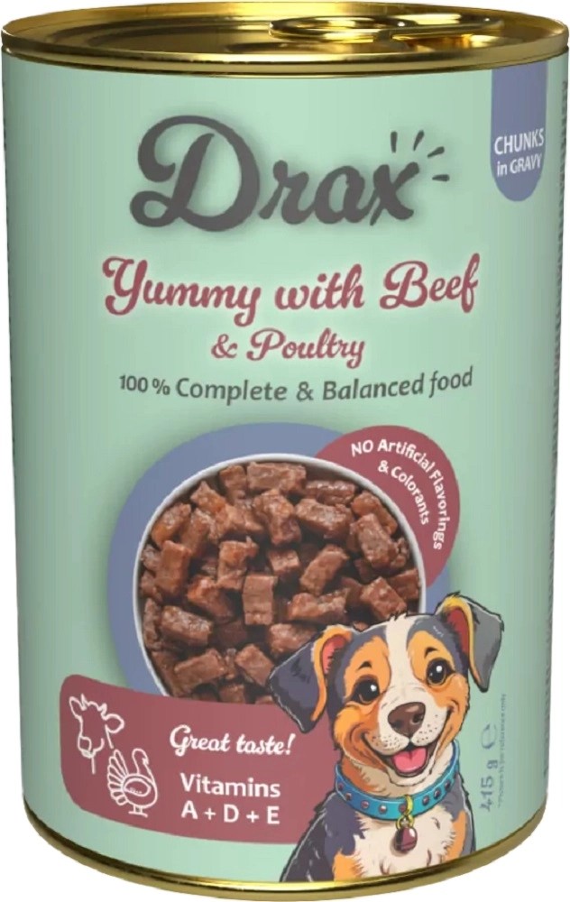 Drax Konzerva pro psy Adult s hovězím a drůbežím, 415 g