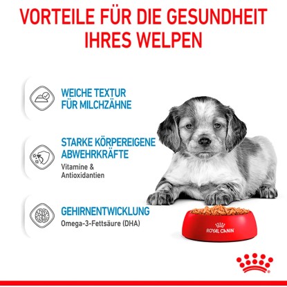 Aby mohlo uspokojit chutě co nejvíce psů, krmivo Royal Canin Medium Puppy je dostupné také jako suché krmivo s křupavými a chutnými granulemi.