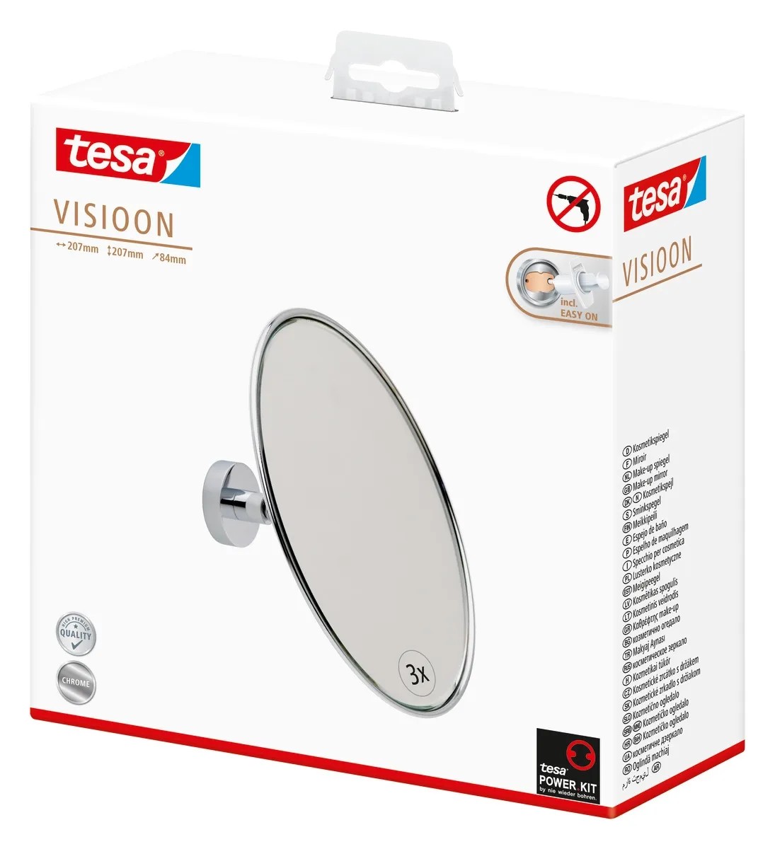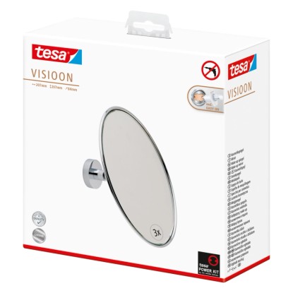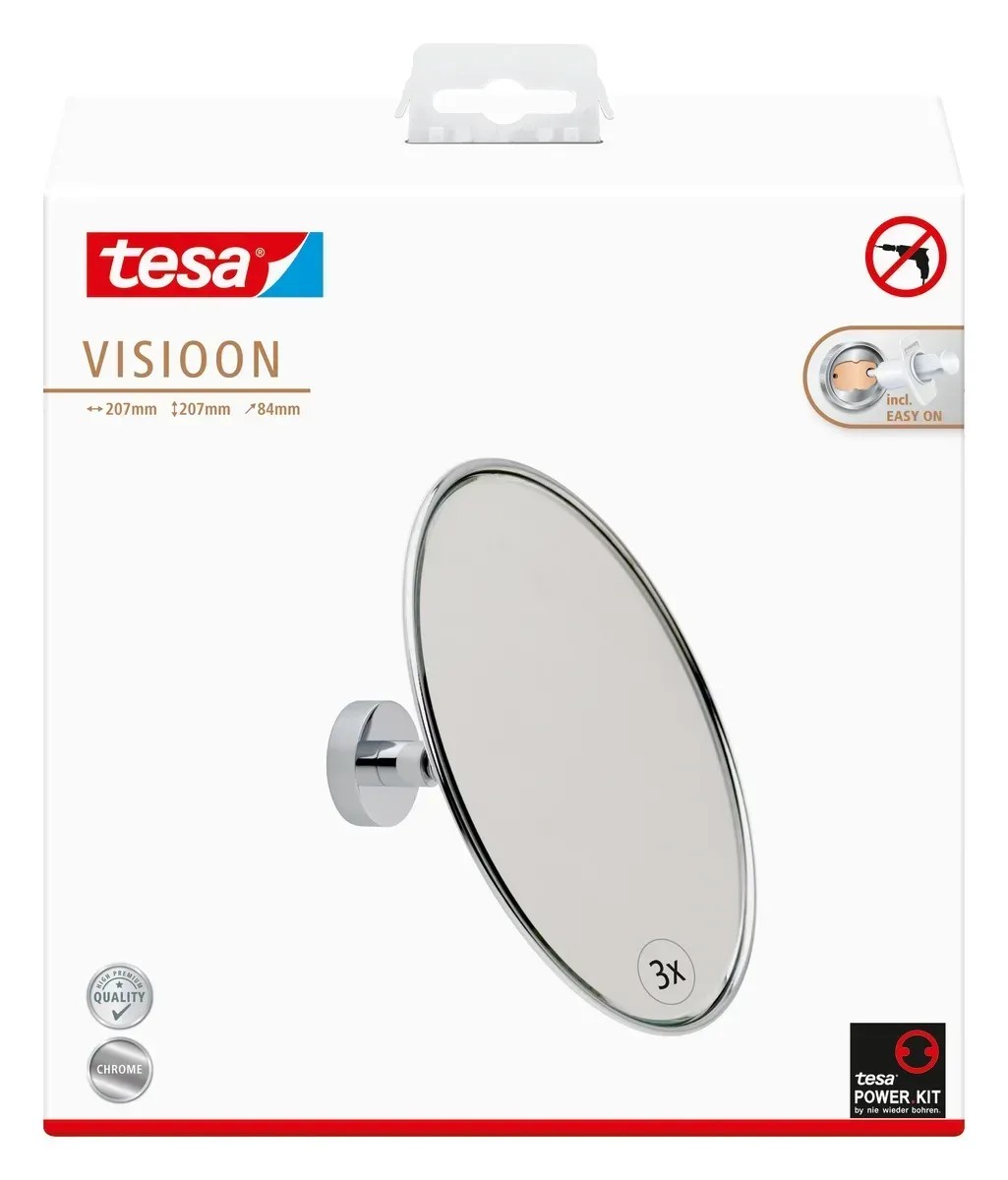 Vaše koupelna je vaším osobním kosmetickým salonem, kde budete potřebovat extra přesnost. S nástěnným kosmetickým zrcátkem tesa z řady Visioon to půjde snadno. Díky trojnásobnému zvětšení jasně uvidíte detaily, které by v běžném zrcadle vidět nebyly. Nastavitelný kulový kloub mu dává mimořádnou flexibilitu - jeho polohu si můžete upravit podle potřeby. Nástěnné upevnění není pouze dekorativní, ale také mimořádně prostorově úsporné, a je tedy praktickým řešením pro malé koupelny.