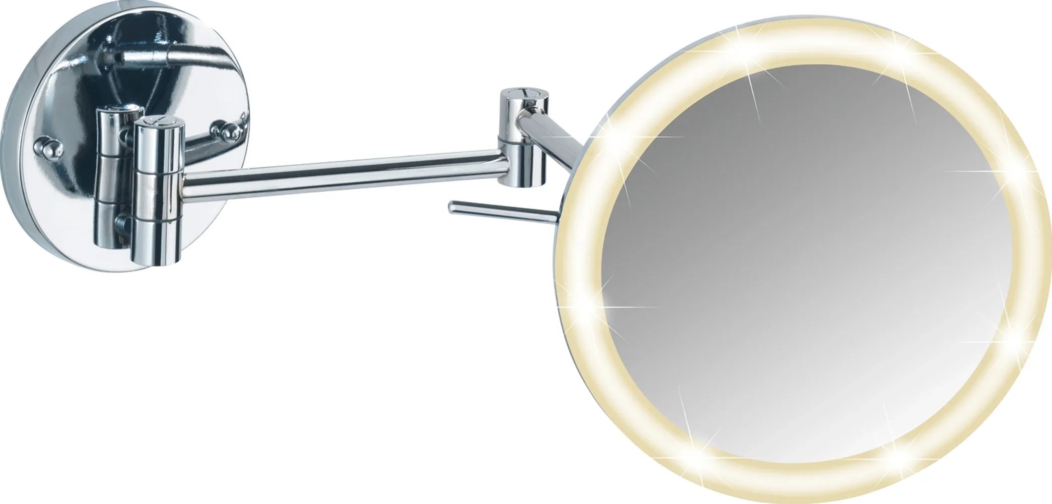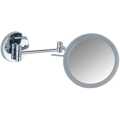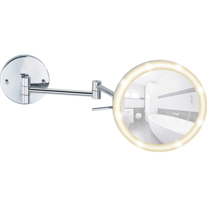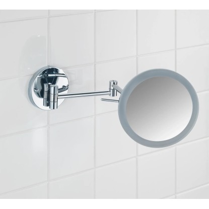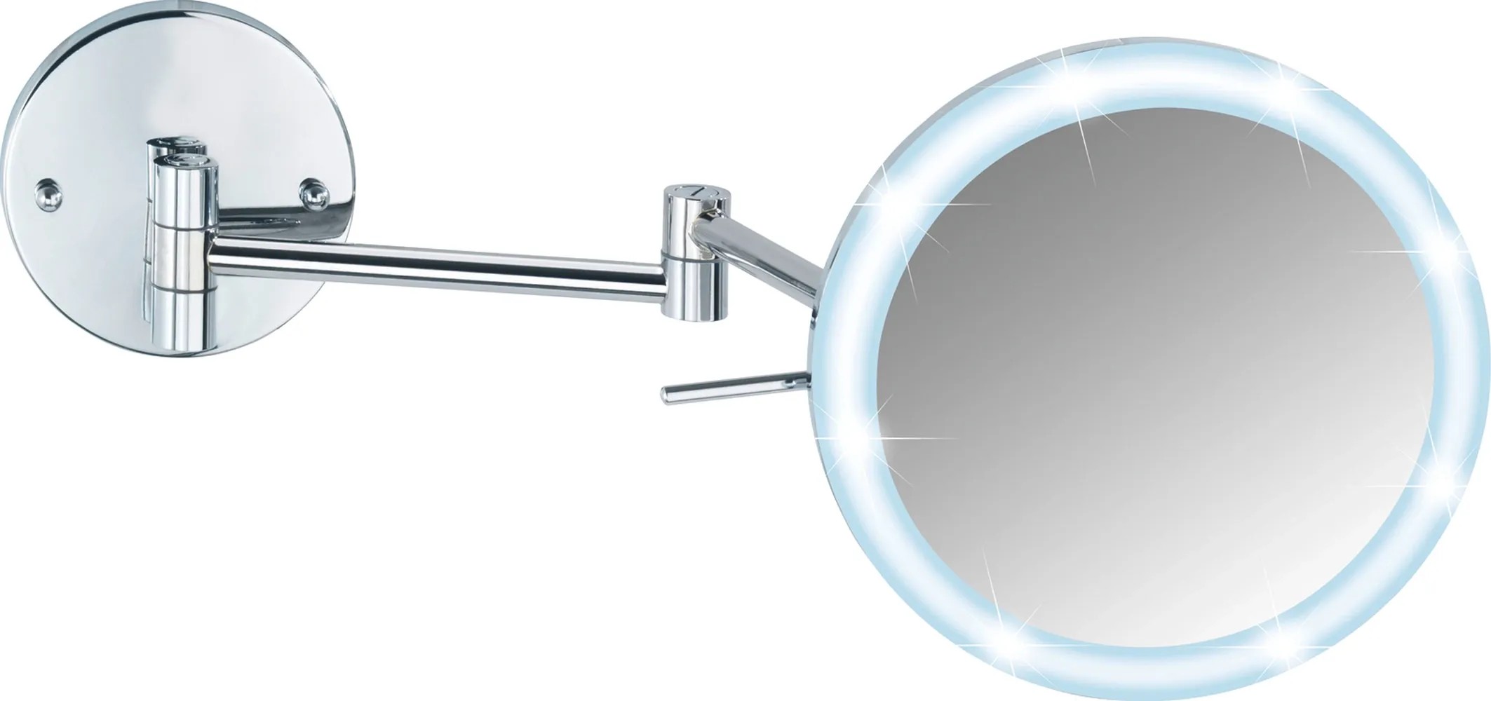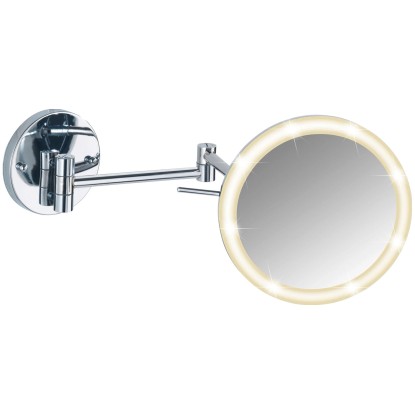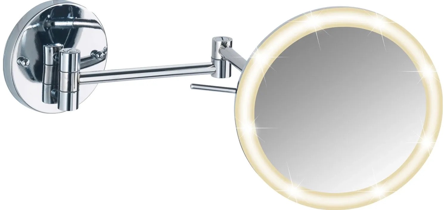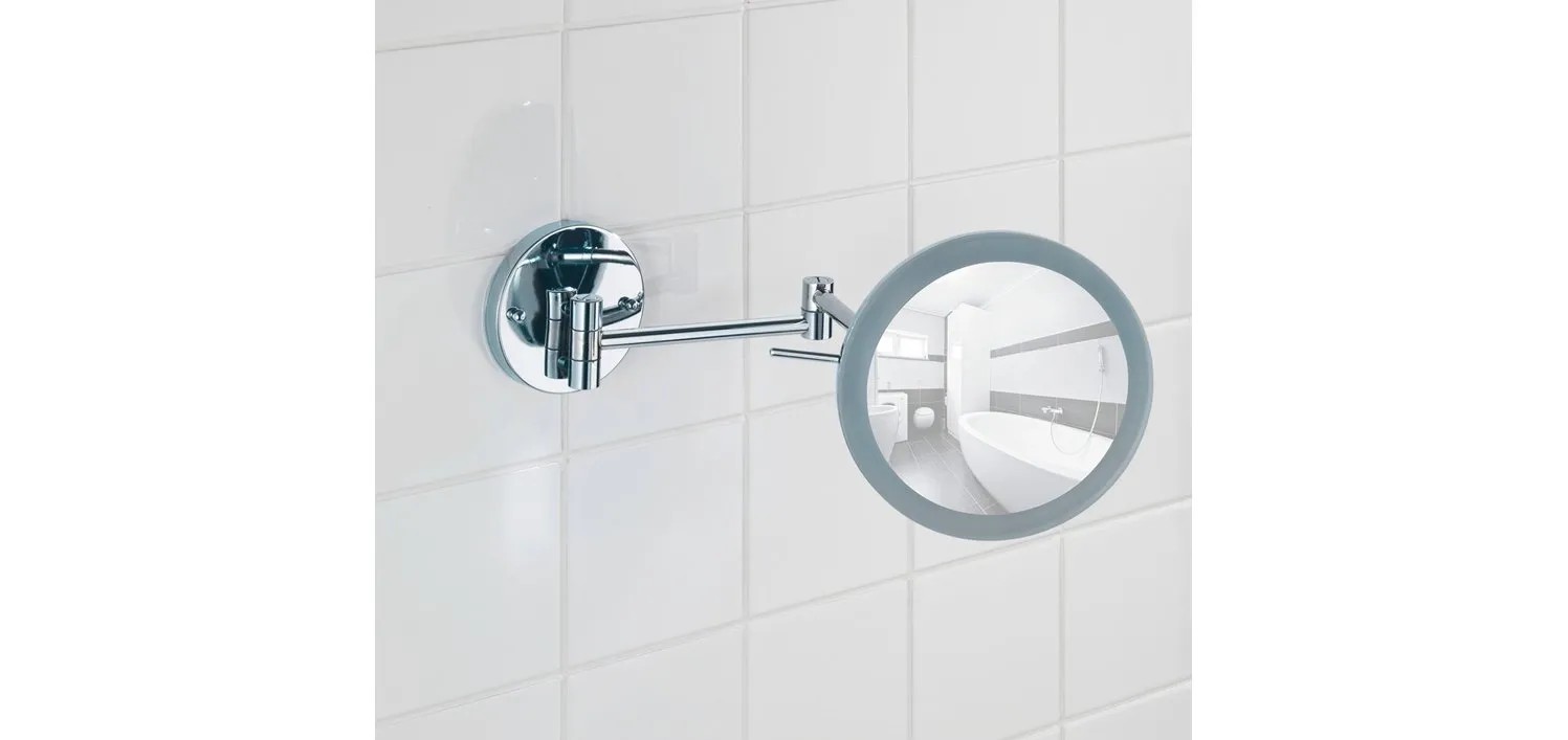 Wenko Power-Loc nástěnné zrcadlo s LED osvětlením má 5násobné zvětšení pro kosmetické účely. Zrcadlová plocha má průměr 20 cm.