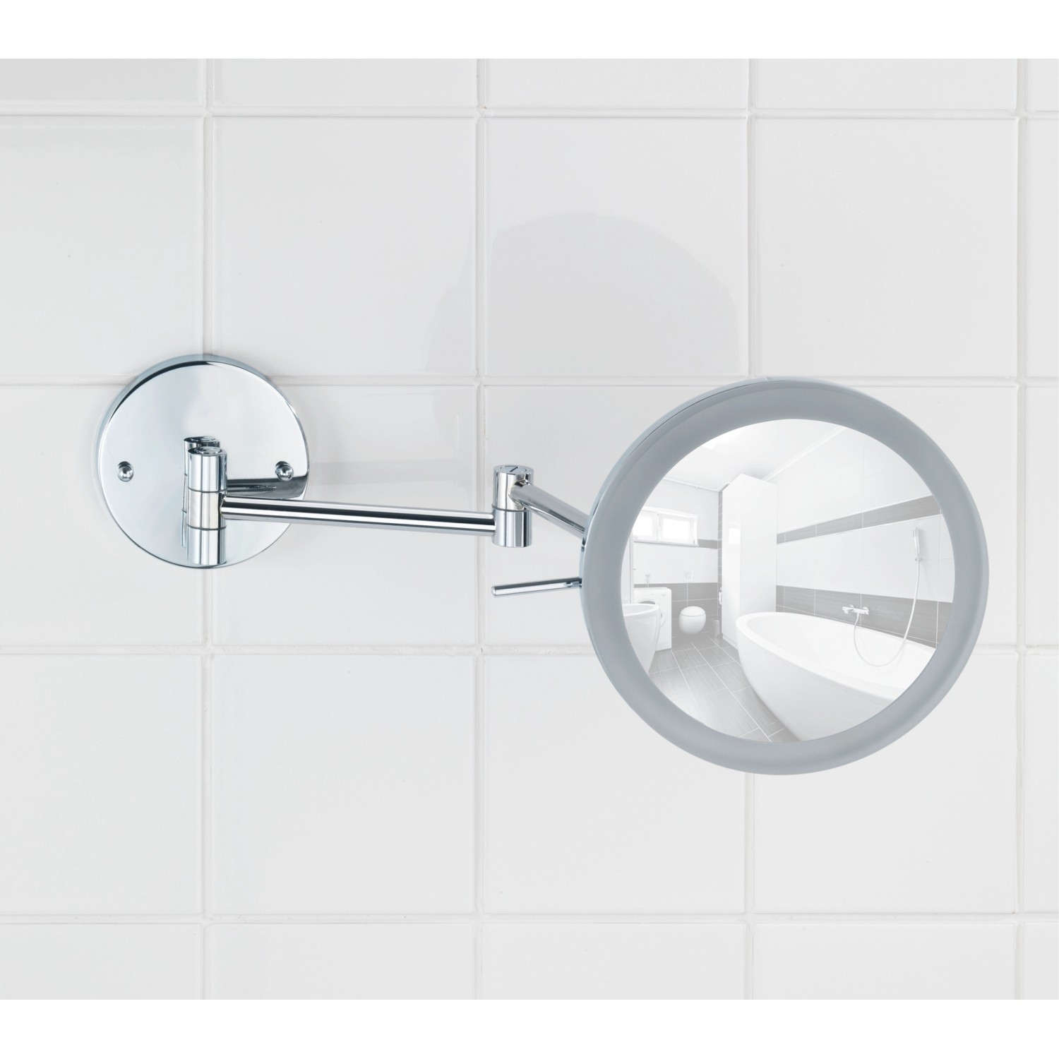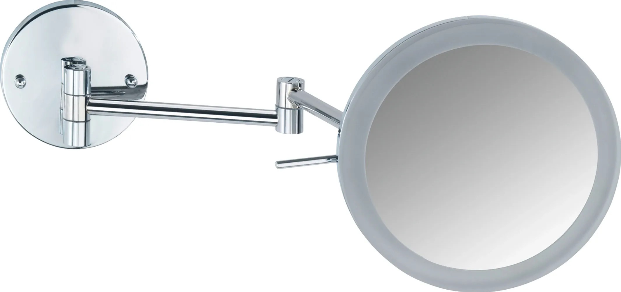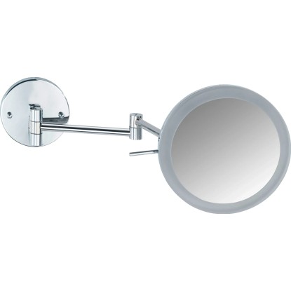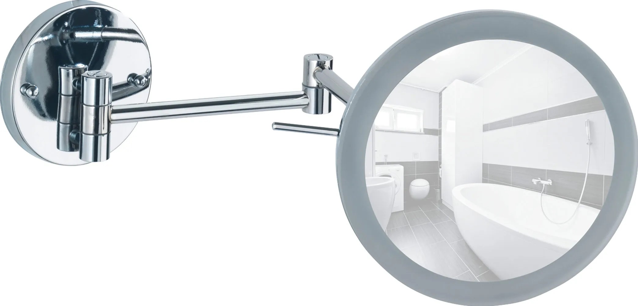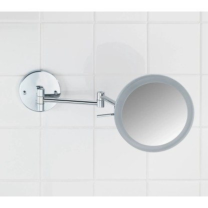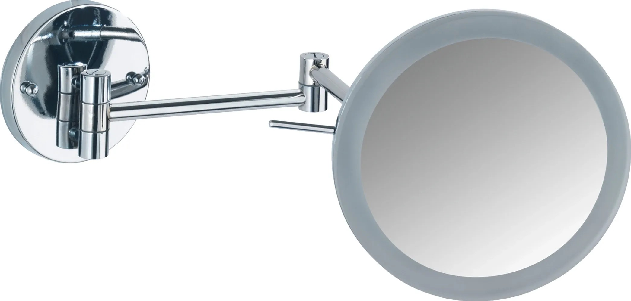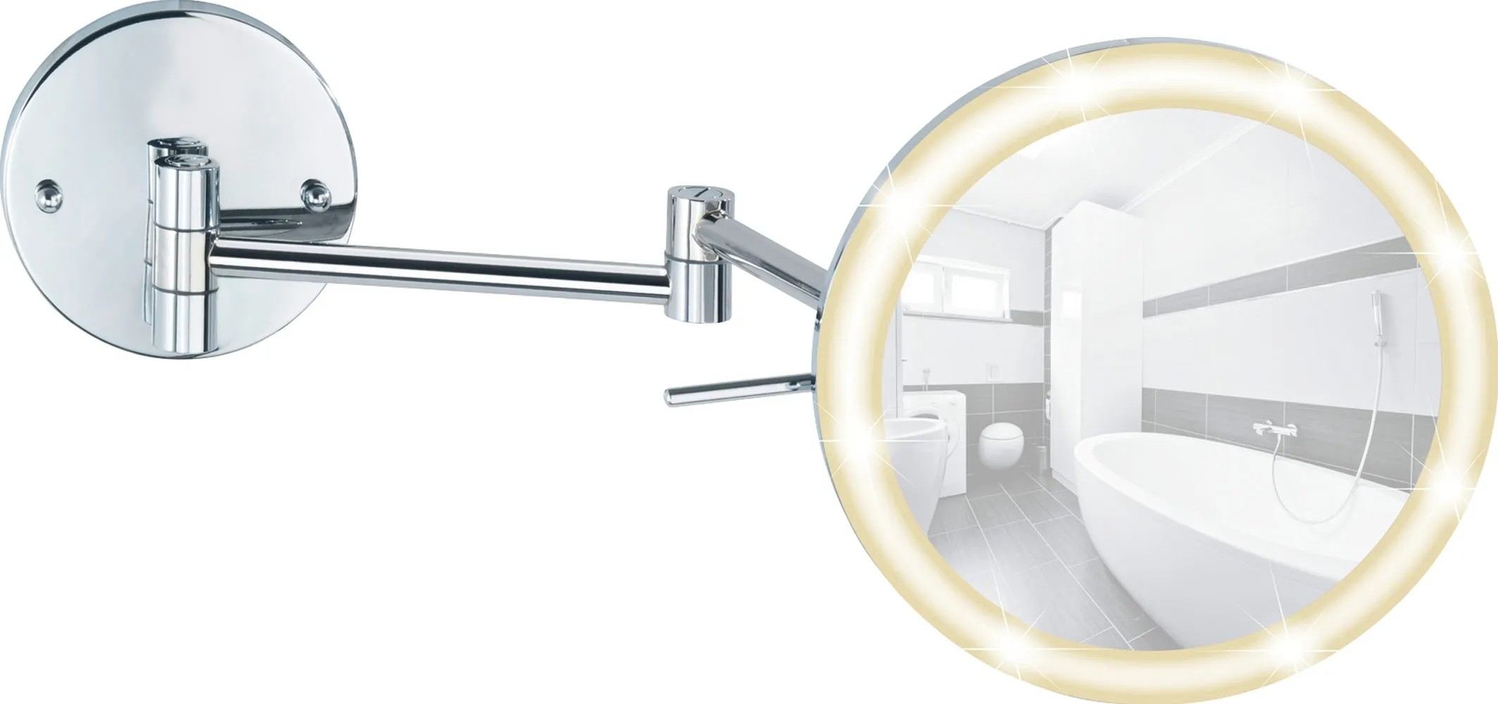 Wenko Power-Loc nástěnné zrcadlo s LED osvětlením má 5násobné zvětšení pro kosmetické účely. Zrcadlová plocha má průměr 20 cm.