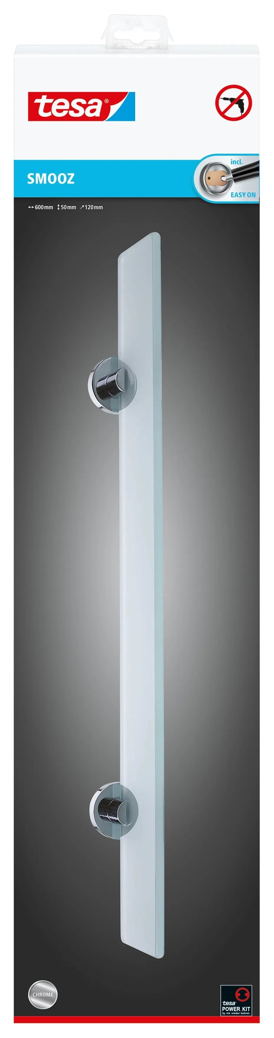 tesa Skleněná polička Smooz, chrom, 50 x 600 x 120 mm