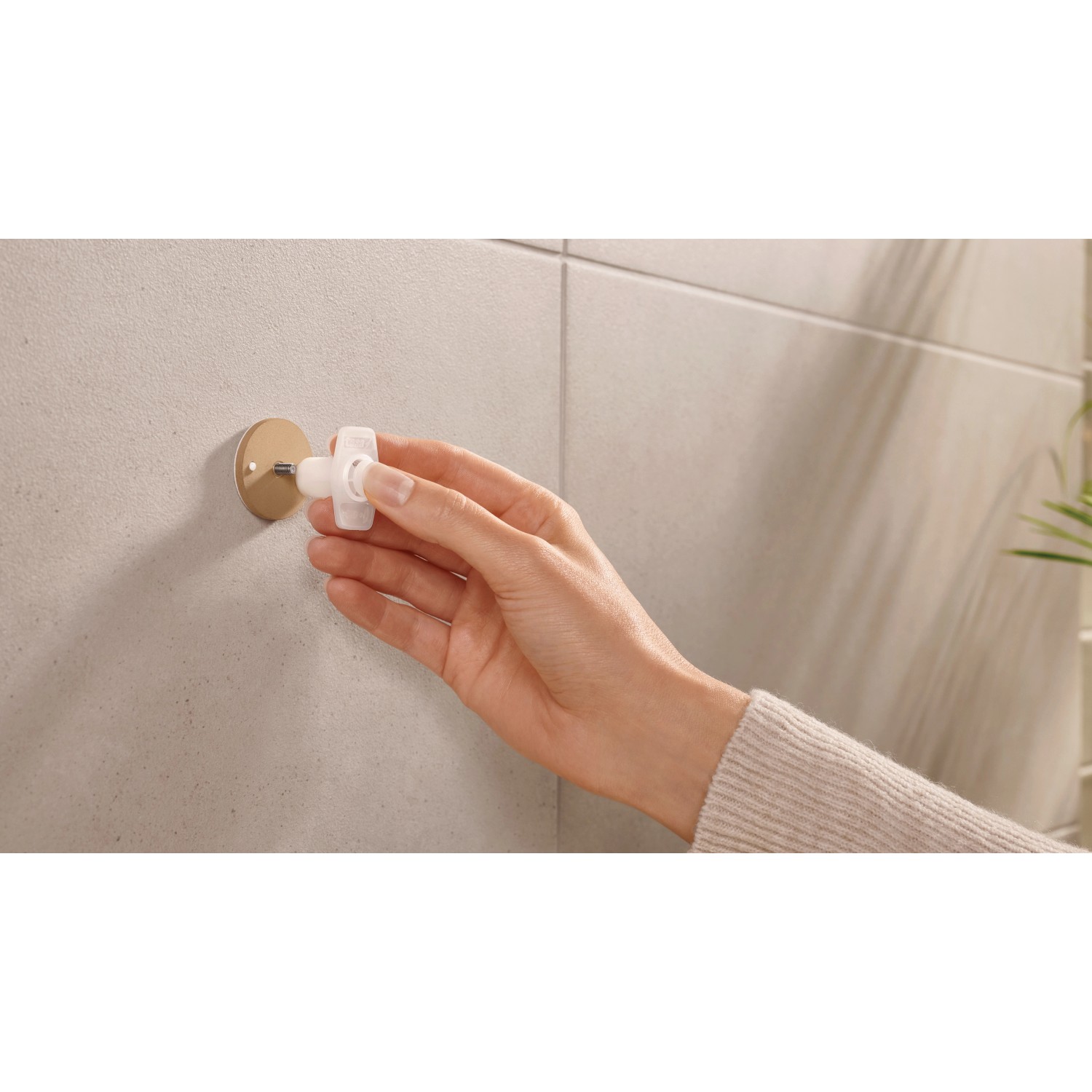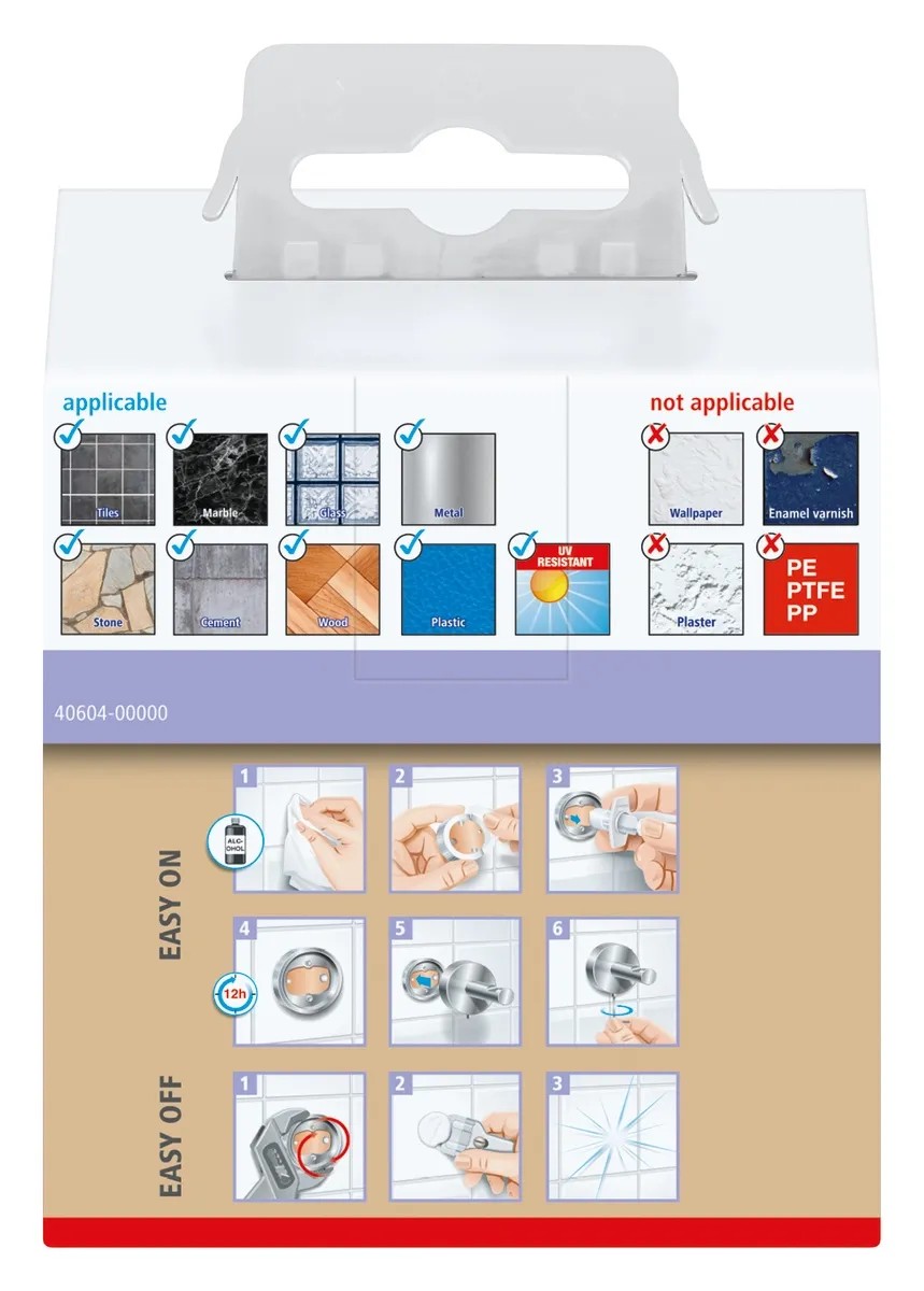 Háček se připevňuje pomocí lepidla, takže není zapotřebí vrtání, a stěny i obklady ve vaší koupelně tak zůstanou nepoškozené. Lepidlo vyžaduje dobu pro zaschnutí 12 hodin a poté je háček schopen udržet i těžké ručníky. Tento moderní háček na ručník lze kdykoli beze stopy odstranit a znovu použít na jiném místě s novým adaptérem BK73.