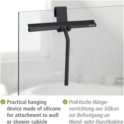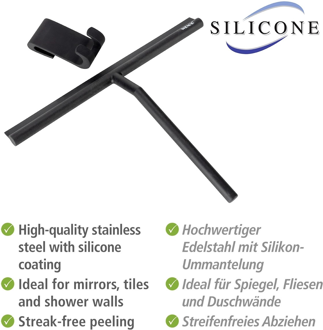 Wenko Koupelnová stěrka Mola XXL, široká stírací plocha ze silikonu, černá