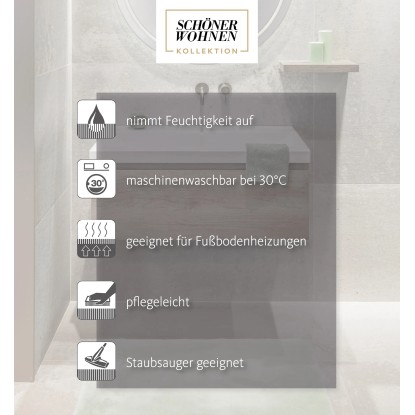 Pocit jako měkká chůze po obláčku - koupelnové předložky Bali z kolekce Schöner Wohnen zajistí požitek z bosé chůze v koupelně. Velmi hebký povrch zaručuje příjemně teplé nohy a navíc udržuje podlahu suchou. Koupelnové předložky se hodí do koupelen s podlahovým vytápěním a lze je prát v pračce na 30 °C. Protiskluzová spodní strana navíc brání klouzání rohožky na hladké podlaze. Tři velikosti, které jsou k dostání, se zaručeně hodí do každé koupelny, a to před sprchou, vanou nebo umyvadlem, a perfektně usnadňují kombinování s dalšími koupelnovými doplňky.