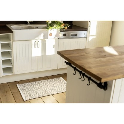 Koupelnová předložka Altai působivě dokazuje, že udržitelnost také velmi dobře vypadá. Předložka má módní styl etno. Hra geometrických vzorů je typická pro tento trend, který kombinuje tvary a styly z celého světa. Udržitelná koupelnová předložka zaujme svým vlnitým, ale symetrickým vzorem. Třásně na krátkých stranách podtrhují trendy vzhled etno. Díky nenápadnému designu ve světlých, zemitých barevných odstínech je předložka univerzálním pomocníkem, který se perfektně začlení do mnoha různých konceptů koupelen. Díky svým rozměrům (Š x H): 50 x 80 cm se hodí jako předložka do koupelny před vanou nebo umyvadlem, jako sprchová předložka nebo jako dekorativní koberec. Moderní koupelnovou předložku lze samozřejmě použít také jako koberec do jiných prostor, kde upoutá pozornost na podlaze.