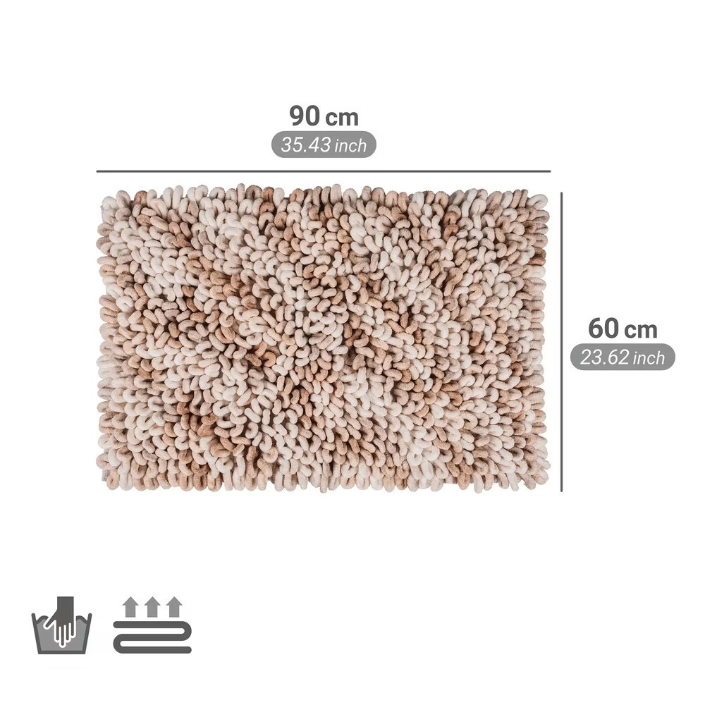 Trendy 3D struktura s XXL poutky zajišťuje příjemný pocit při chůzi a přitom nepouští absolutně žádná vlákna. Díky vysoké absorpci vlhkosti a rychleschnoucím vlastnostem zůstane vaše koupelna stále svěží a suchá. Tato koupelnová předložka je navíc kompatibilní s podlahovým topením, což zajišťuje větší komfort a poskytuje optimální zážitky při použití.