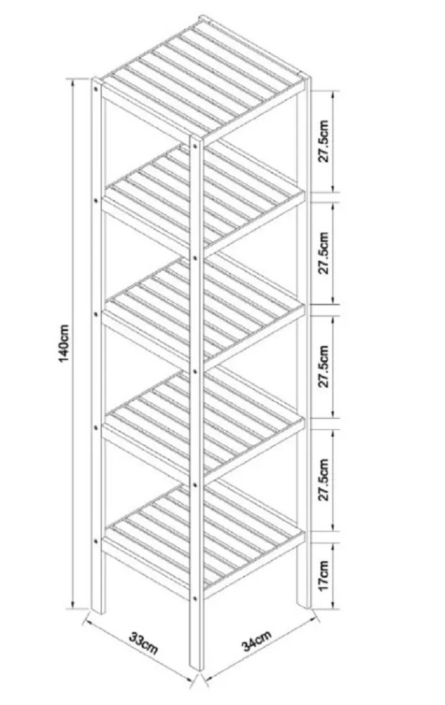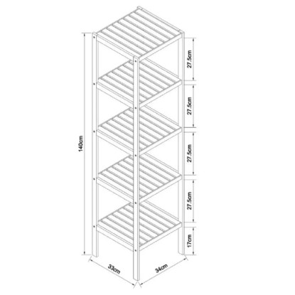 Eisl Bambusový koupelnový regál s 5 policemi, 34 x 33 x 140 cm