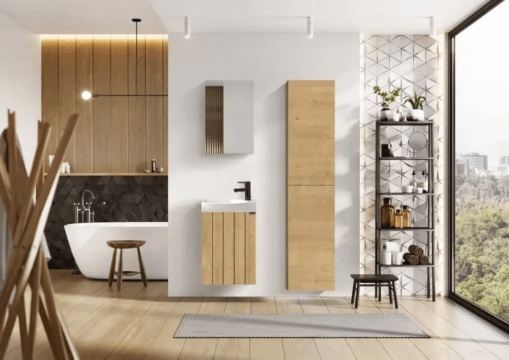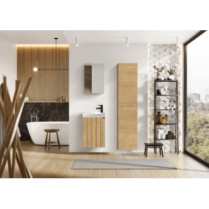 Vysoká koupelnová skříňka představuje praktické řešení pro ukládání v každé koupelně. Je vyrobena z dřevotřísky potažené melaminem, je odolná proti vlhkosti a snadno se udržuje v čistotě. Dvojité dveře vybavené systémem tichého dovírání a mechanismem Push To Open zajišťují komfort používání. Vnitřek skříně nabízí šest polic (4 výškově nastavitelné), které umožňují přizpůsobit prostor různým předmětům. Kompaktní hloubka 146 mm zajišťuje, že je nábytek prostorný, a zároveň nezabírá mnoho místa.