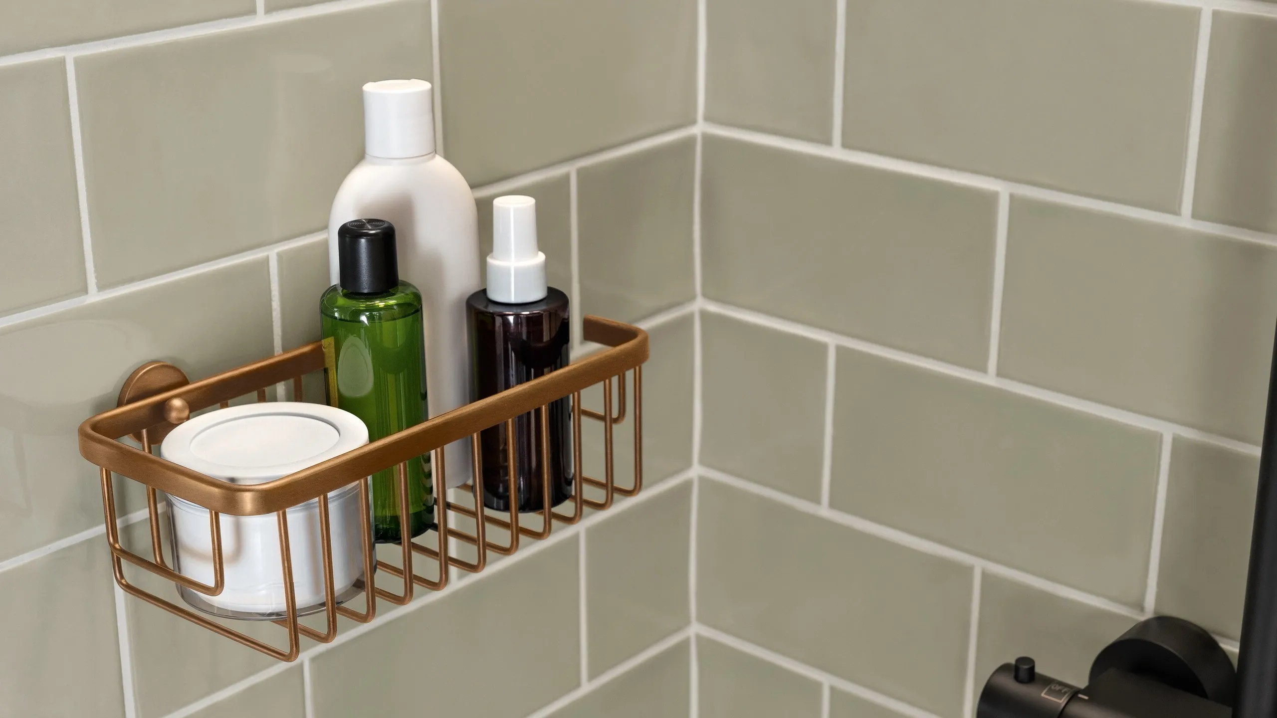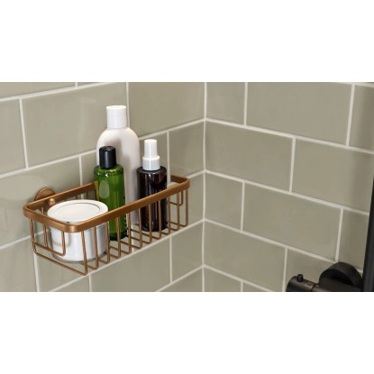 V moderní i retro koupelně se šikovná odkládací plocha rozhodně hodí. Košík nabízí prostor pro mnoho lahviček a nádobek a je dostatečně hluboký, aby z něj nic nevypadlo. Ideální řešení pro skladování v koupelně bez vrtání. S tímto sprchovým košíkem nehrozí poškození stěn ani dlaždic. Díky PVD polakování je nejen atraktivní, ale také odolný proti poškrábání.