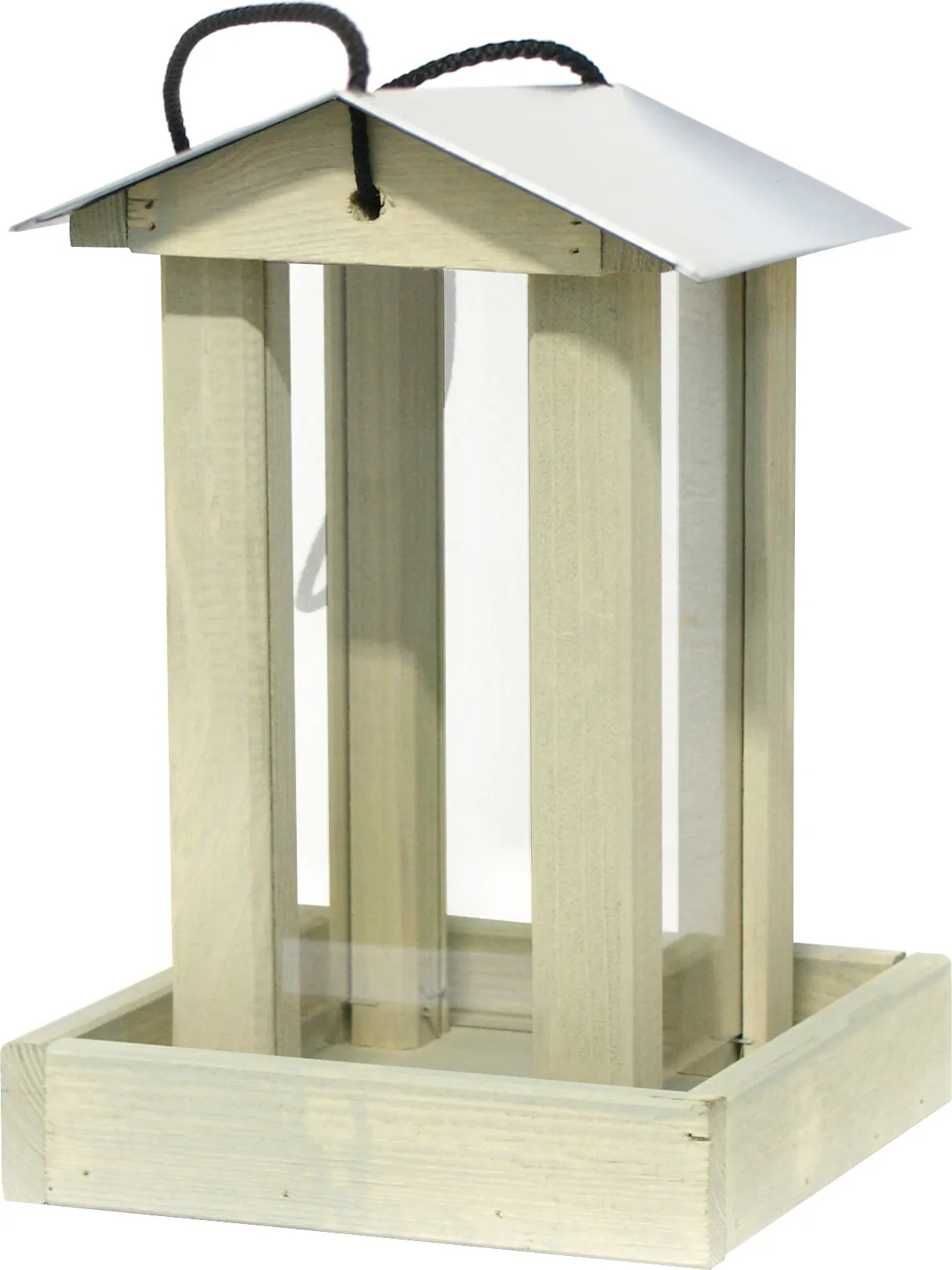 Krmítko z borovicového dřeva zaujme svým moderním vzhledem. Je vybaveno zinkovou střechou a bočnicemi z akrylátového skla. Střecha domku se dá otevřít, což znamená, že do šachty z akrylátového skla můžete nasypat krmivo pro ptáky a zároveň vidět, jak je hladina vysoká.