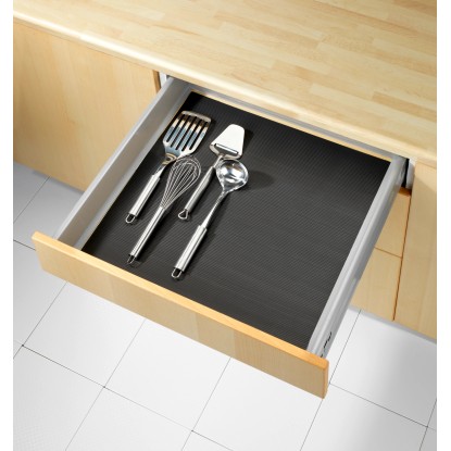 Ideální protiskluzová zarážka ve skříních a zásuvkách. Zajišťuje, aby sklenice, hrnce a malé díly bezpečně stály. Tlumí hluk a lze jej nařezat na míru. Plošná hmotnost: 400 g/m2. Barva: černá
