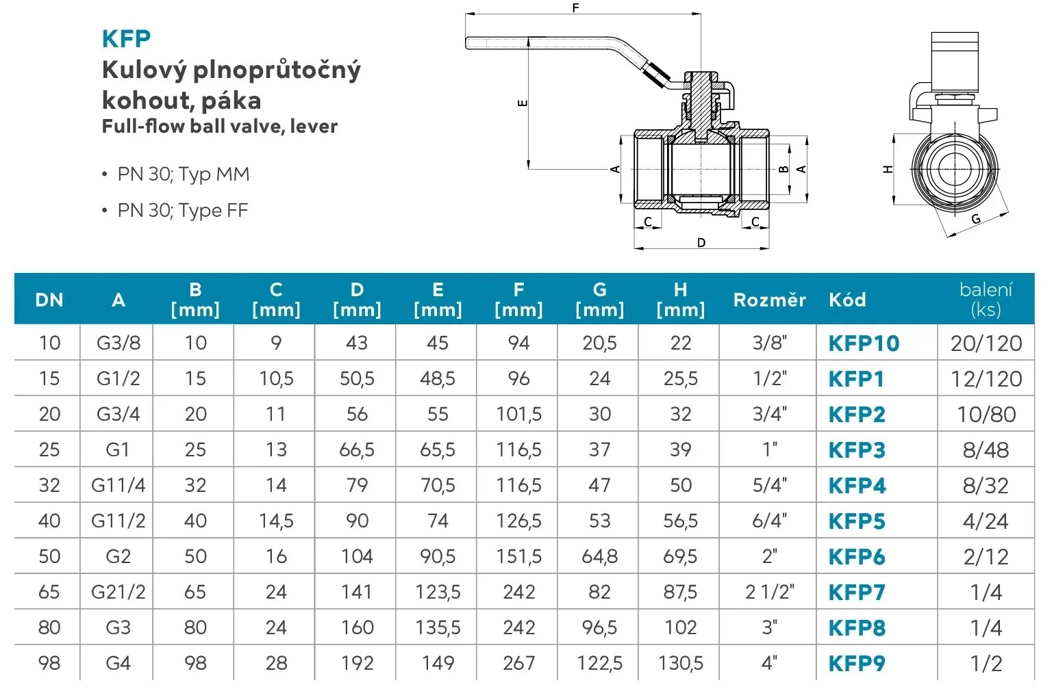 - Rozsah pracovních teplot média: min. -30 °C, max. 120 °C (platí pro typy KFP, KFPM, KFPS)