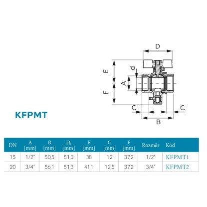 Ferro Kulový plnoprůtočný kohout KFPMT1 s připoj na čidla, motýlek MM 1/2"