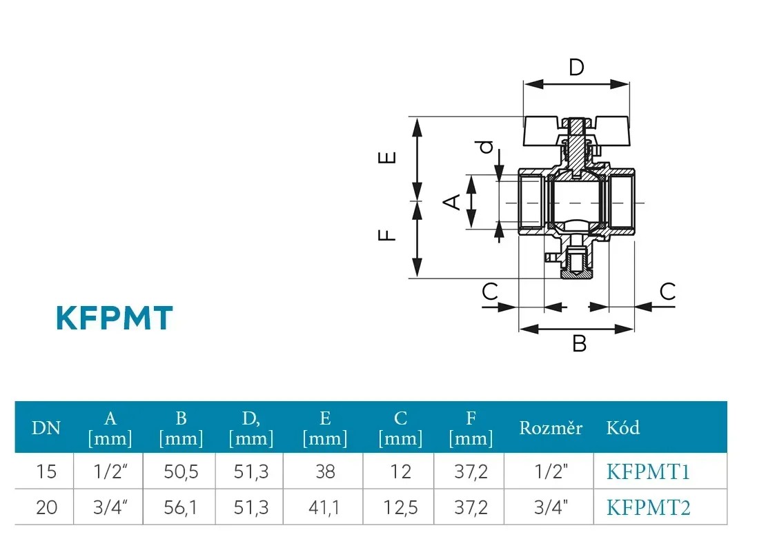 - Rozsah pracovních teplot média: min. -30 °C, max. 120 °C (platí pro typy KFP, KFPM, KFPS)