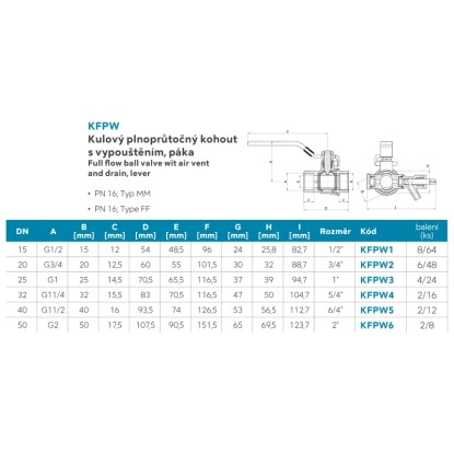 - Kohout nijak neovlivňuje průtok média, plný průtok podle normy