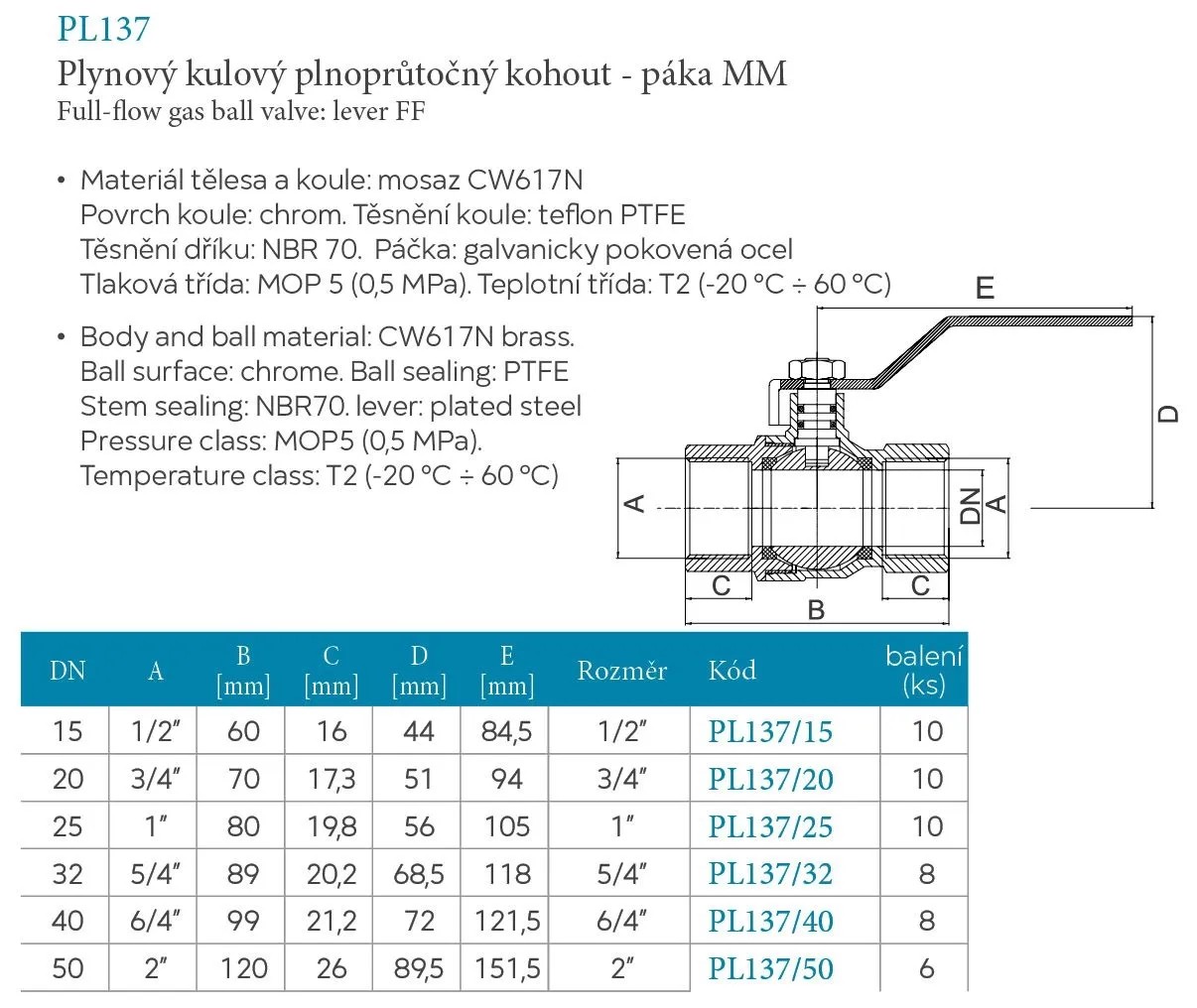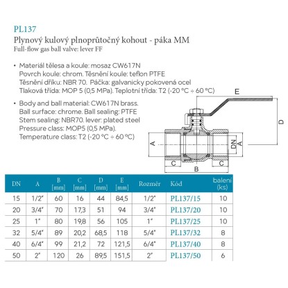 Ferro Plynový kulový kohout MM RP 1 1/4" (KGN4)