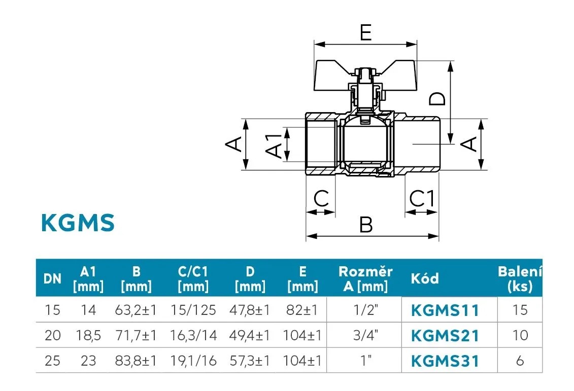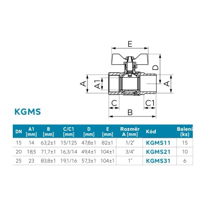 Ferro Plynový kulový kohout ŠM - motýlek RP 1/2" x RP 1/2" (KGMS11)