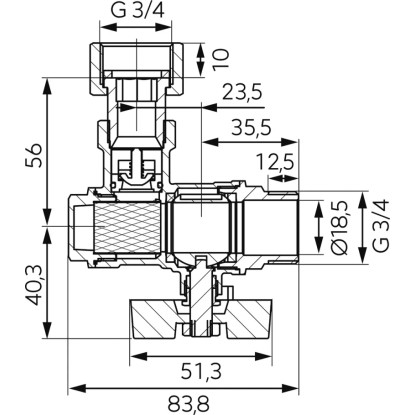 Ferro Rohový kulový kohout KFMFZZ2SGK s filtrem a zpětnou klapkou, 3/4"