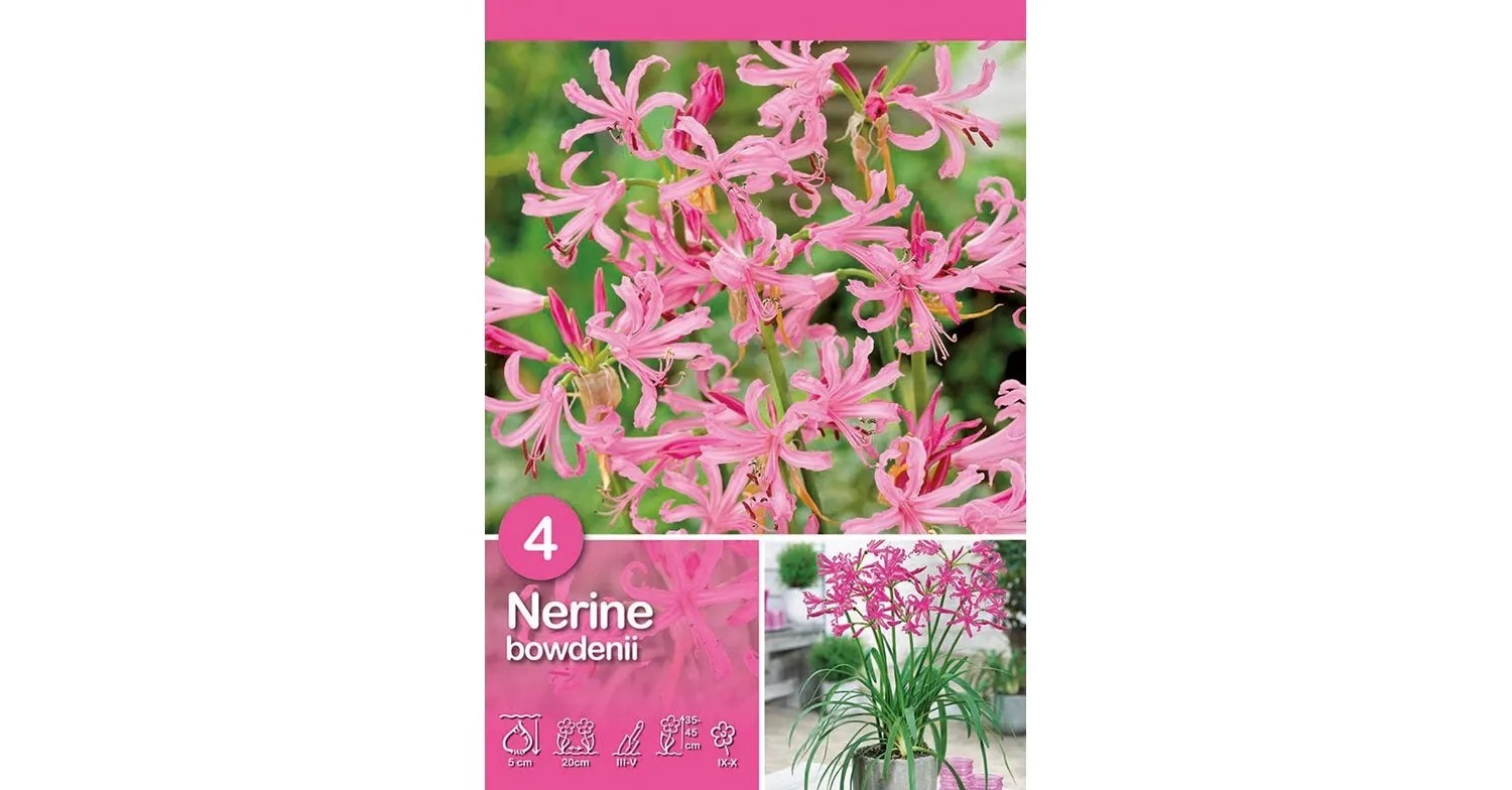 Amarylis zahradní " Nerine bowdenii"kvete v létě. Vysazuje se na jaře do hloubky 15 cm. Půda by měla být dobře propustná pro vodu, tak jako u všech cibulovin. Cibulky amarylisu zahradního se na zahradě ideálně vysazují do skupinek po dvou.