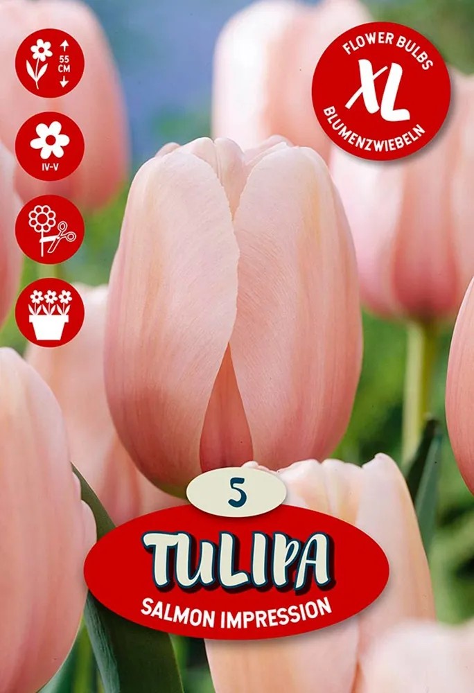 Tulipa Darwin Salmon Impression je cibulka květiny kvetoucí na jaře. Vysazuje se na podzim do jamky hluboké 10 cm. Půda by měla být dobře propustná pro vodu, tak jako u všech cibulek. Na jaře si pak budete moci vychutnávat krásu květů.