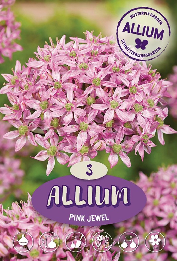 Růžové kulovité květy okrasného česneku Pink Jewel se nejlépe vyjímají mezi růžemi nebo na záhonech trvalek ve venkovské zahradě. Na svých vysokých a pevných stoncích působí tyto velkokvěté rostliny všude silným dojmem.