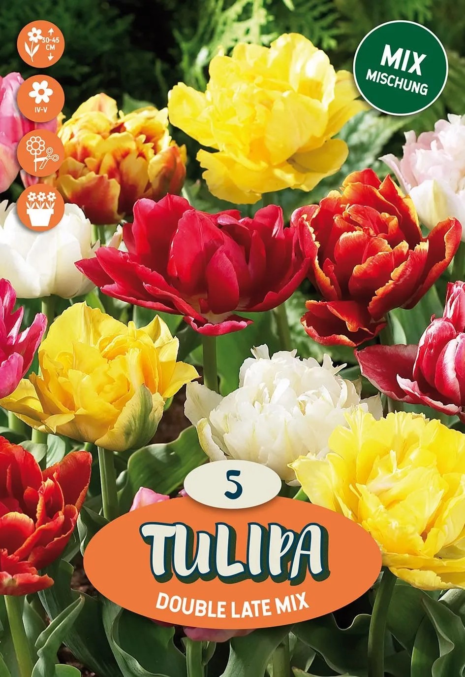 Plný pozdní tulipán "Mix" kvete na jaře, na podzim se vysazuje do cca 10 cm hluboké jamky. Půda by měla být dobře propustná pro vodu, tak jako u všech cibulovin. Tato květina je ideální do květinových záhonů nebo k ohraničení záhonů a dá se velmi dobře kombinovat s ozdobnou pažitkou. Do zahrady přináší mnoho barev.