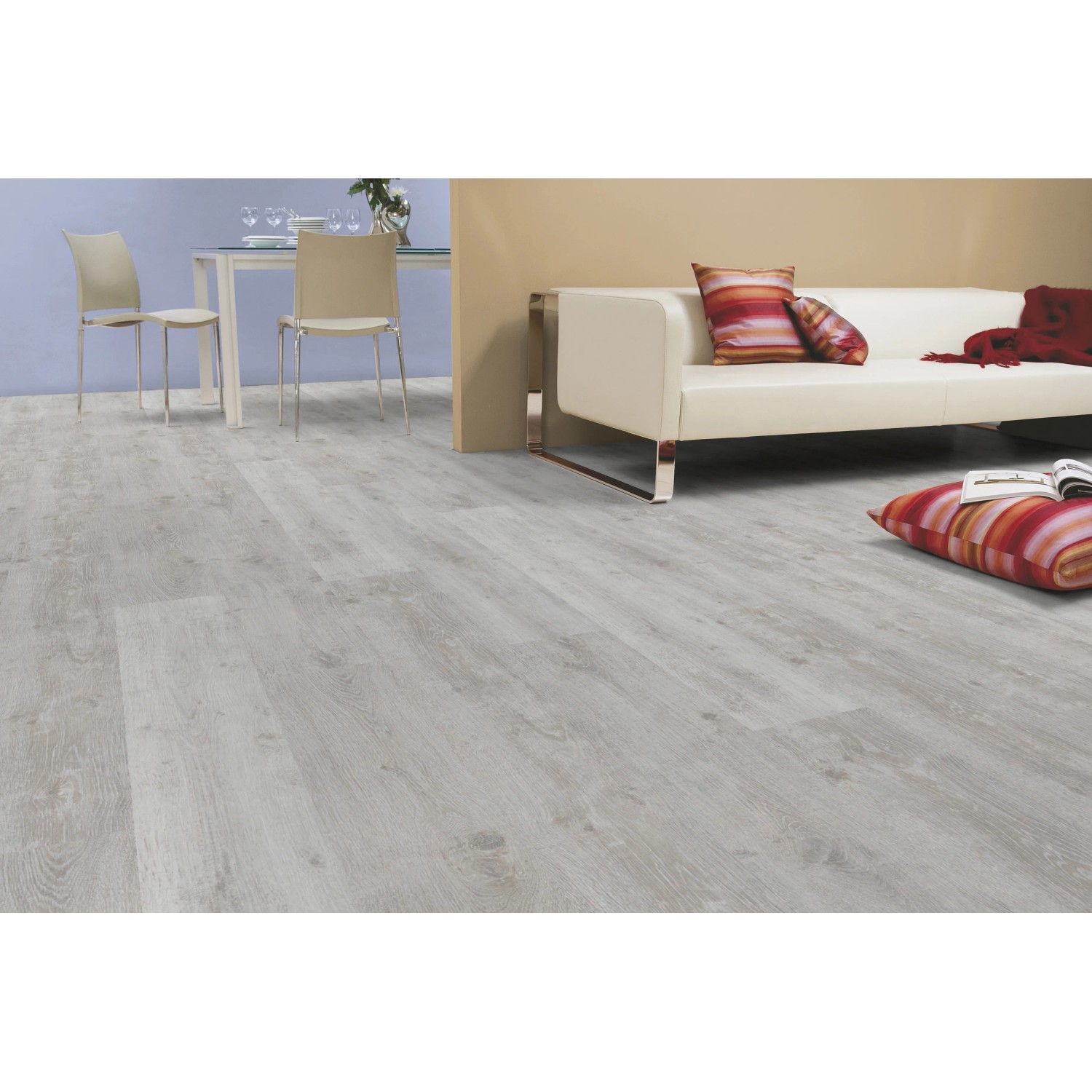 Laminát je název pro podlahu s vícevrstvou strukturou. Skládá se z HDF nosné desky s podložkou, moderního dekoru a otěruvzdorné povrchové vrstvy. Laminátové podlahy Kaindl jsou oblíbené především díky nekonečnému množství velikostí a dekorů.