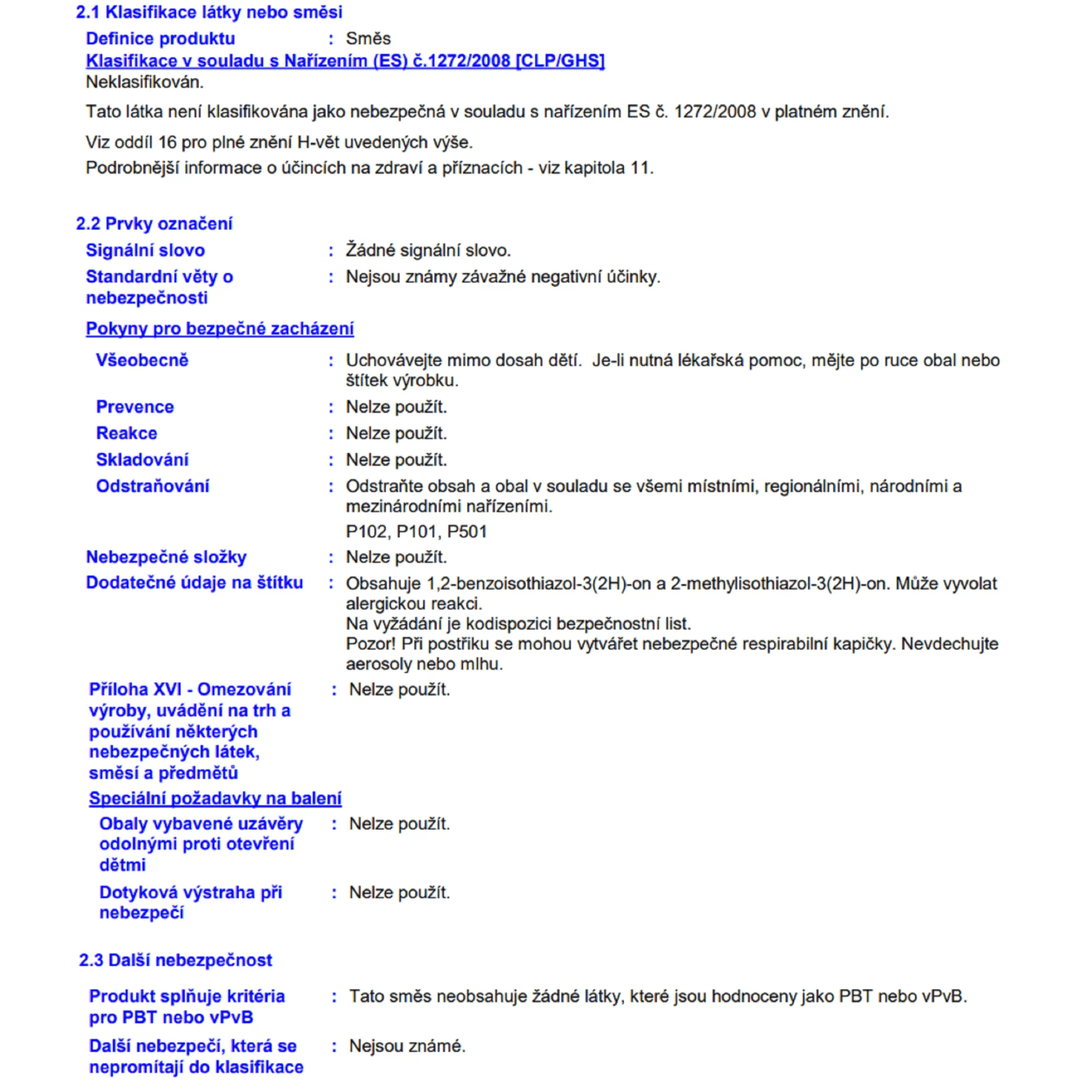 | Bez rozpouštědel: | Obsahuje rozpouštědla |