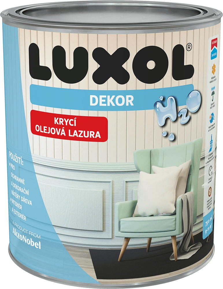 LUXOL DEKOR je krycí olejová lazura na vodní bázi pro dekorativní nátěry na dřevo s ochranou proti povětrnostním vlivům a UV záření. Rychleschnoucí receptura má vylepšené vlastnosti jako zvýšenou vodoodpudivost, vysokou přilnavost dalšího nátěru, mechanickou odolnost a také hlubokou penetraci. Díky nové krémové konzistenci se lépe roztírá a jednoduše aplikuje. Lazura vyniká stálými barevnými odstíny s matně saténovým vzhledem. Nátěr neomezuje dýchání dřeva a díky sníženému obsahu VOC je také šetrnější k životnímu prostředí.