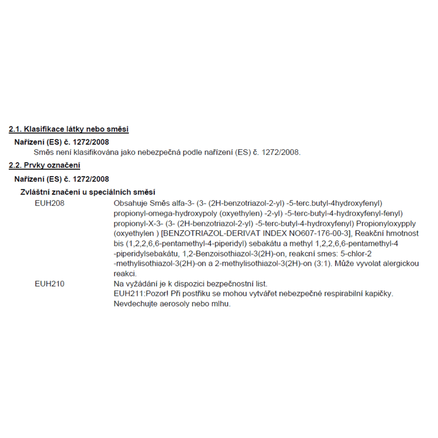 | Vhodné pro alergiky na isothiazolinon: | Nevhodné |
