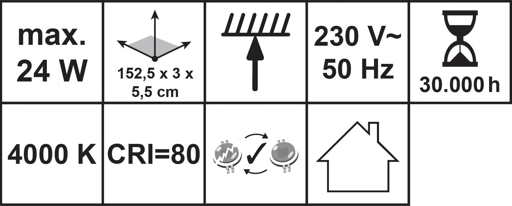 LED světelná lišta je ideálním řešením pro efektivní a spolehlivé osvětlení v interiéru. Díky neutrálně bílé barvě světla 4000 K navodíte světlou a přátelskou atmosféru. 24W svítidlo poskytuje působivý jas 2800 lumenů pro rovnoměrné osvětlení v každém úhlu. Integrovaná výměnná LED trubice T8 má životnost 30000 hodin a zajišťuje konstantně vysokou kvalitu světla, zatímco robustní kryt z ocelového plechu válcovaného za studena chrání svítidlo.