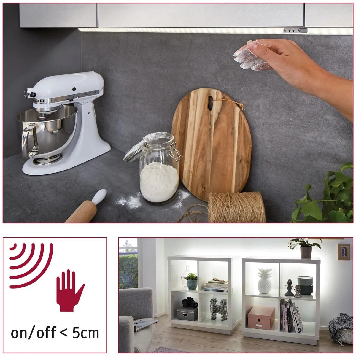 Zapněte své pásky YourLED v kuchyni a koupelně i bez dotyku vlhkýma nebo špinavýma rukama. Světlo se zapne a vypne po přiblížení k infračervenému senzoru.