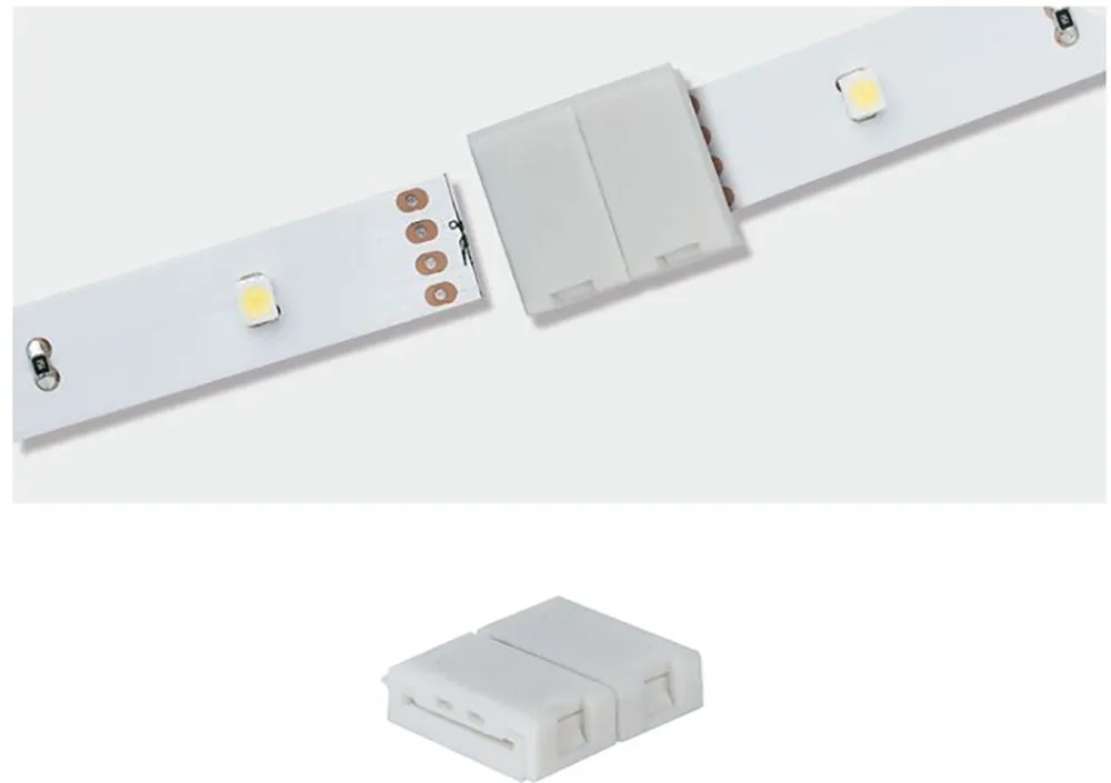Pomocí spojovacího prvku YourLED ECO Clip-to-Clip lze navzájem spojit ustřižené konce pásků YourLED ECO. Podporuje flexibilní zkrácení délky systému a umožňuje opětovné používání zbývajících úseků pásku.