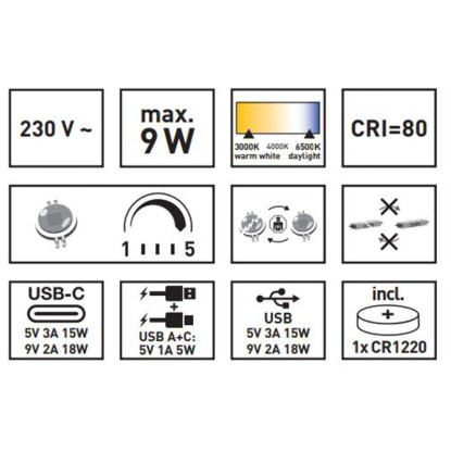 - Vč. plynulého stmívání pomocí dotykové funkce