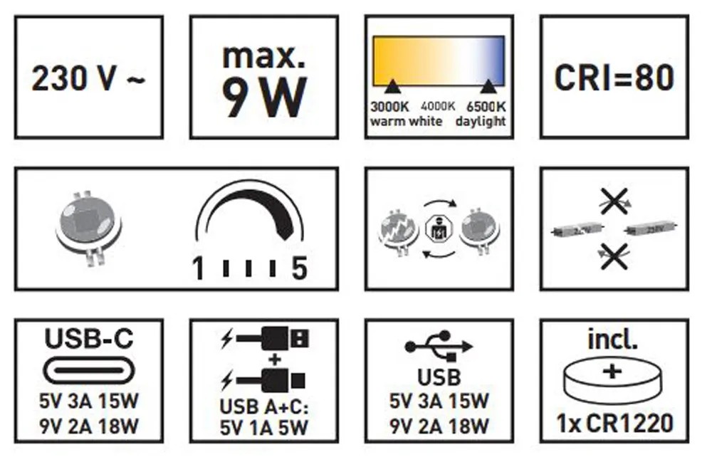 Tato LED lampička má moderní vzhled a je vhodná do interiéru. Lampička je stmívatelná, disponuje krokovou změnou teploty chromatičnosti 3000/4000/6500 K od teplé bílé až po denní bílou.