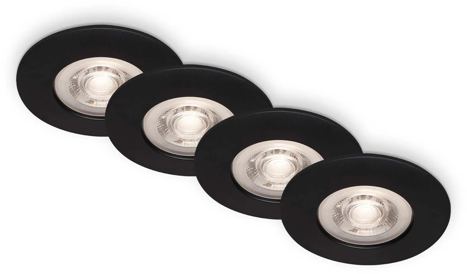 Brilo Vestavné LED svítidlo Kulana, stmív., 4,9 W, matné černé, 4 ks, 9 x 2,5 cm