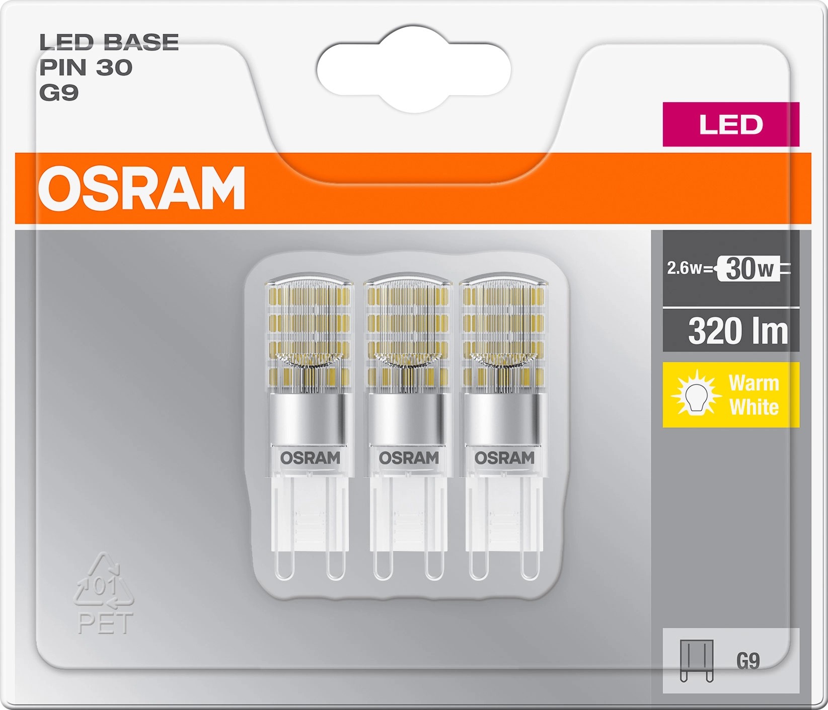 OSRAM Speciální LED žárovka BASE PIN G9 2,6W 320lm 2700K pr. 15 x 47 mm