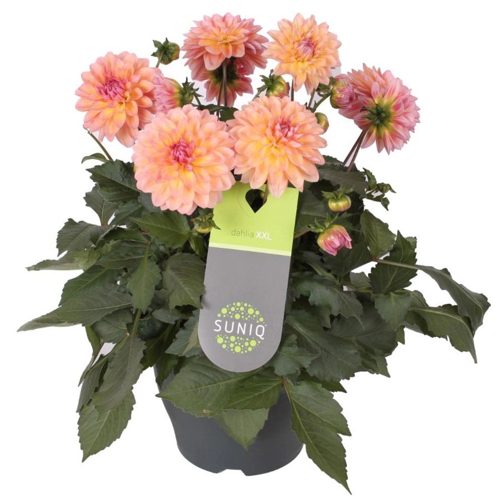 Jiřina (Dhalia) "Suniq" vynikne na každé zahradě i na balkónu a terase v květináčích. Patří do čeledi hvězdicovitých - Asteraceae. Její kolébkou je Mexiko, odkud se od konce 18. století rozšířila po Evropě. Květy se vyznačují typickou vůní. Zelené duté stonky dorůstají do výšky 0,3 m. Jsou olistěné protistojnými dělenými a na okrajích vroubkovanými zelenými listy.