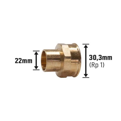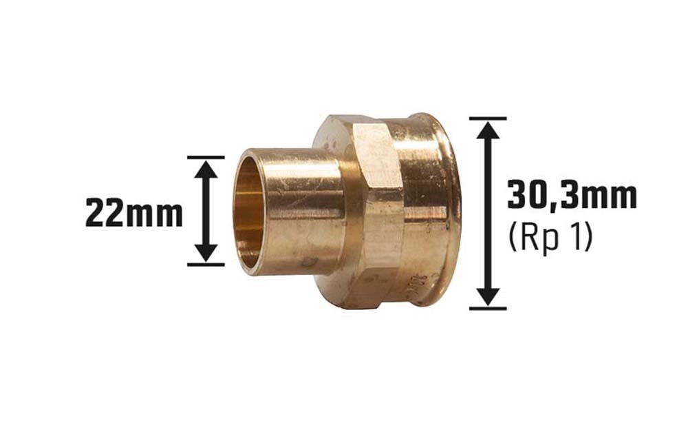 Fitink je proveden jako přechodová mufna podle typu č. 4270G. Umožňuje přechod z průměru trubky 22 mm na vnitřní závit 30,3 mm (Rp 1). Objímka se při montáži přišroubuje a připájí. Spojovací prvek se smí používat pro instalace pitné vody.