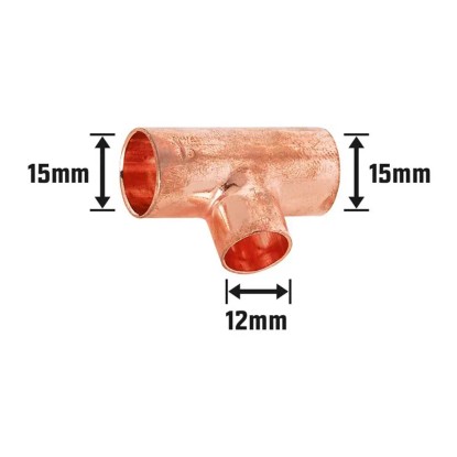 Pájecí redukční T-kus 15 mm x 12 mm x 15 mm měď