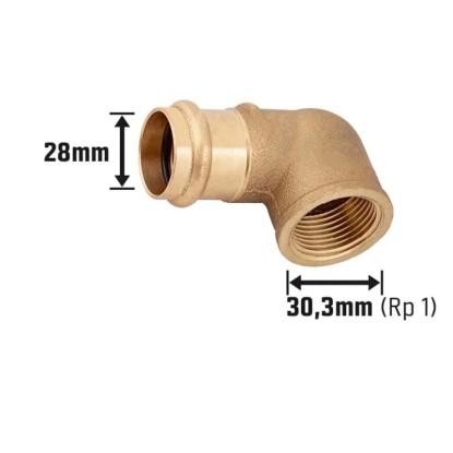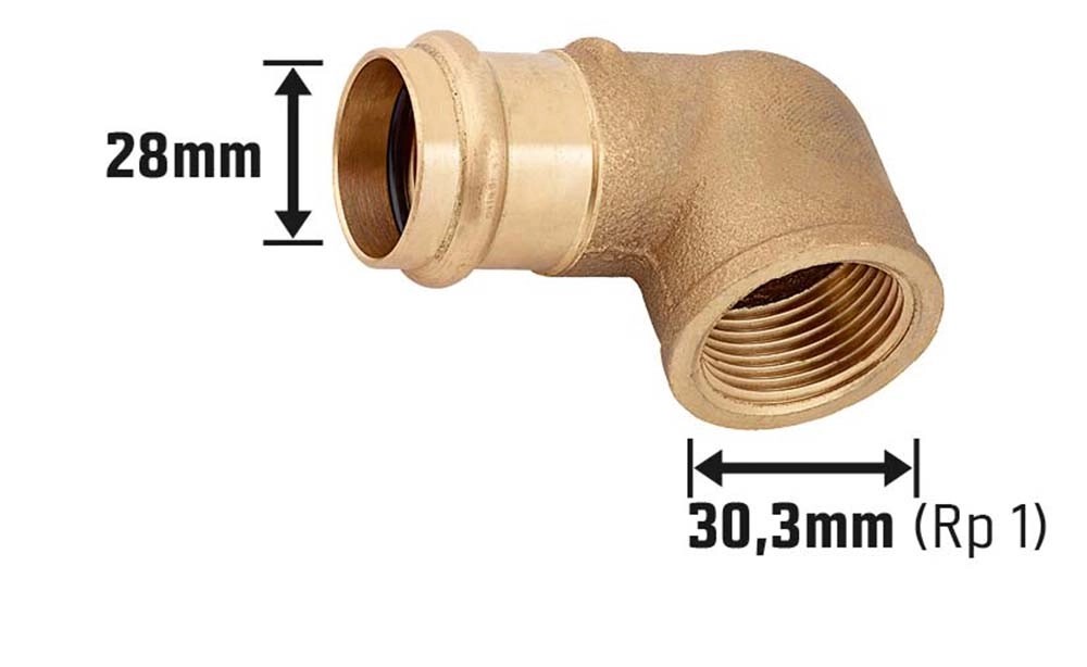 Lisovací koleno vzájemně spojuje dvě měděné trubky v topných a solárních zařízeních a instalaci pitné vody. Je vyrobeno z červeného bronzu. Úhel 90° zajišťuje změnu směru potrubí. Oblouk je na jedné straně opatřen závitem 30,3 mm (Rp 1), zatímco lisovací přípojka má průměr 28 mm. Montáž oblouku probíhá našroubováním nebo lisováním. Navíc je schválen pro použití na instalaci pitné vody a má certifikaci DVGW.