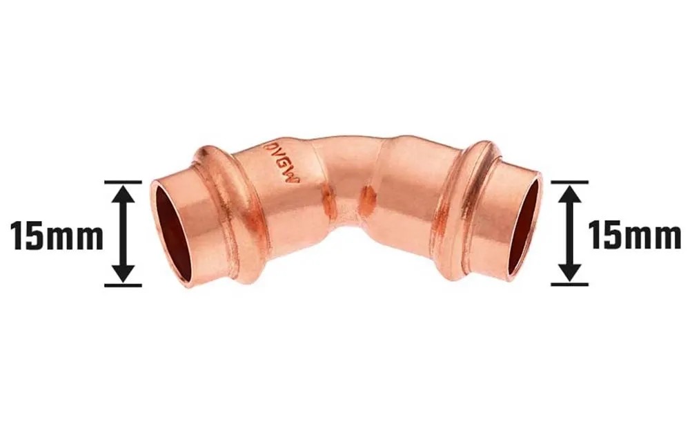 Lisovací oblouk se používá k propojení dvou trubek sanitárních, solárních a topných zařízení. Vhodný je pro trubky z mědi. Fitink je rovněž vyroben z mědi. Má tvar 45° oblouku a umožňuje tak změnit směr potrubí, s obloukem typu II. Průměr činí 15 mm. Montáž se provádí lisováním, vznikne rychlý, trvale těsný spoj, bez použití žáru. Spojovací prvek je schválený pro instalaci pitné vody a má certifikaci DVGW.