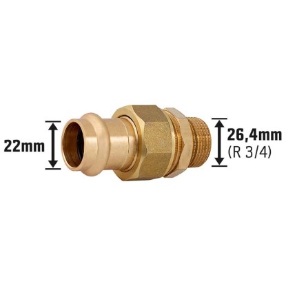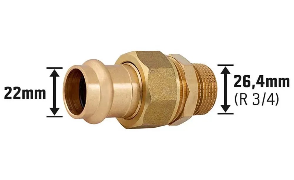Lisovací šroubení se používá ke spojení trubek sanitárních, topných nebo solárních zařízení. Přitom se používá především na měděné trubky. Šroubení je vyrobeno z červeného bronzu a na jedné straně má průměr trubky 22 mm a na druhé straně závit 26,4 mm (R 3/4). Fitink se montuje lisováním případně našroubováním na vhodný protikus. Spojovací prvek má certifikaci DVGW a je schválen k použití na instalaci pitné vody.