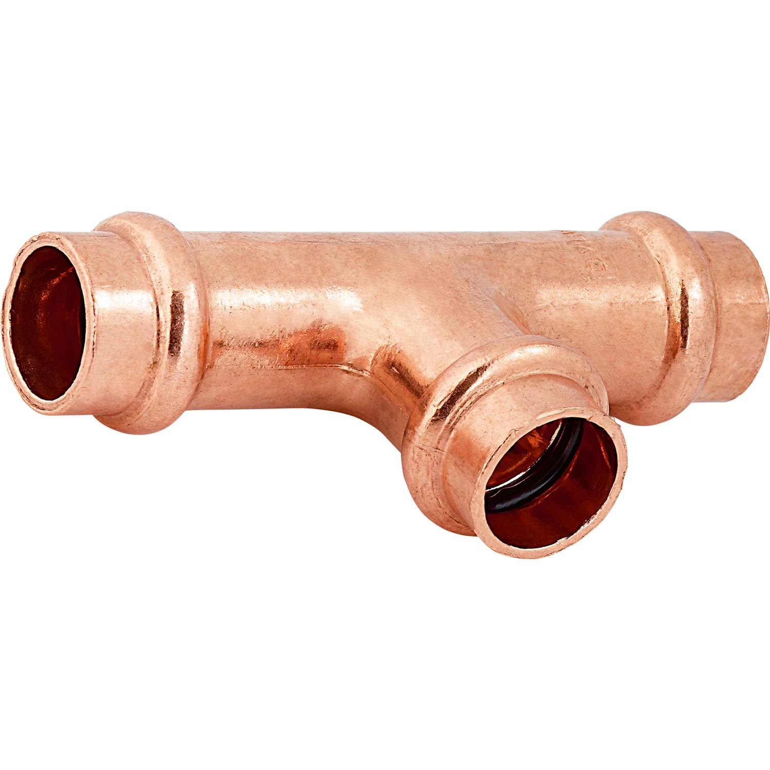 Lisovací T-kus se používá ke spojování kusů měděných trubek v potrubních systémech pro solární a sanitární systémy, jakož i pro oblast vytápění. Materiál T-kusu je měď. Tvar T umožňuje odbočení v potrubním systému. Má tři přípojky, každé o průměru 15 mm. Montáž se provádí lisováním s protikusy. Spojovací prvek byl testován DVGW a je proto schválen pro instalace pitné vody.