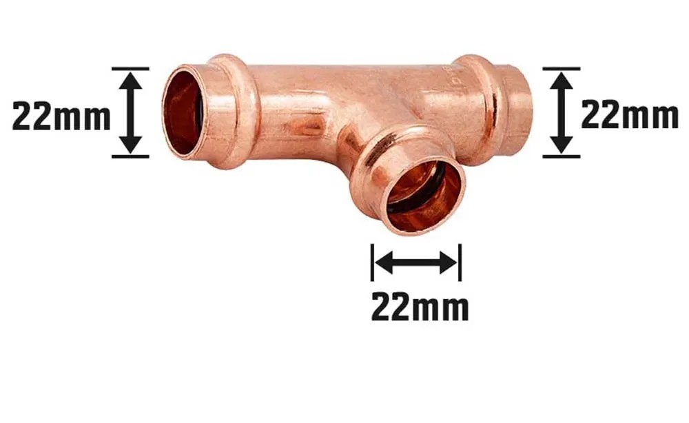 Lisovací T-kus měděný, pr. 22 mm, 1 ks
