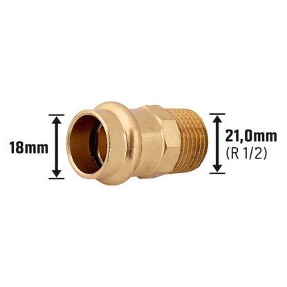 Přechodová vsuvka vzájemně propojuje dvě trubky. Umožňuje rychlou montáž a používá se při instalaci vodovodního potrubí, topení nebo solárních zařízení. Fitink je vyroben z červeného bronzu s vysokým obsahem mědi. Díky tomu je odolný vůči opotřebení a korozi z vnitřního pnutí. Spojovací prvek má rovný tvar pro přímé připojení ve stejném směru. Montáž je rychlá a jednoduchá díky možnosti slisování. Díky tomu se vzniklý trubkový spoj neuvolní ani při změně teploty nebo tlakovém zatížení. Lisovací vsuvka má průměr 18 mm x 21 mm (R 1/2). Je vhodná k propojení měděných trubek, které se převážně používá při instalaci topení. Navíc je vhodná pro pitnou vodu.